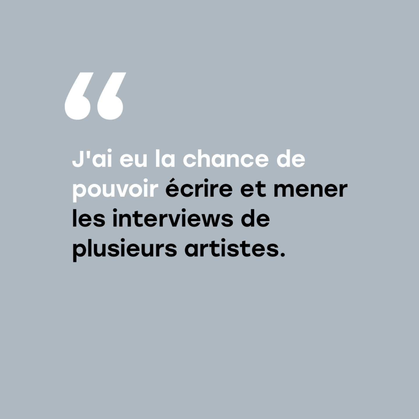 « Durant ces 6 mois de stage chez CANAL +, j'ai eu la chance de pouvoir écrire et mener les interviews de plusieurs artistes. C'était une mission qui n'était pas écrite sur l'offre de stage et j'ai été agréablement surpris lorsque ma manager m'a appris que je ferai la rencontre de plusieurs personnalités ! »